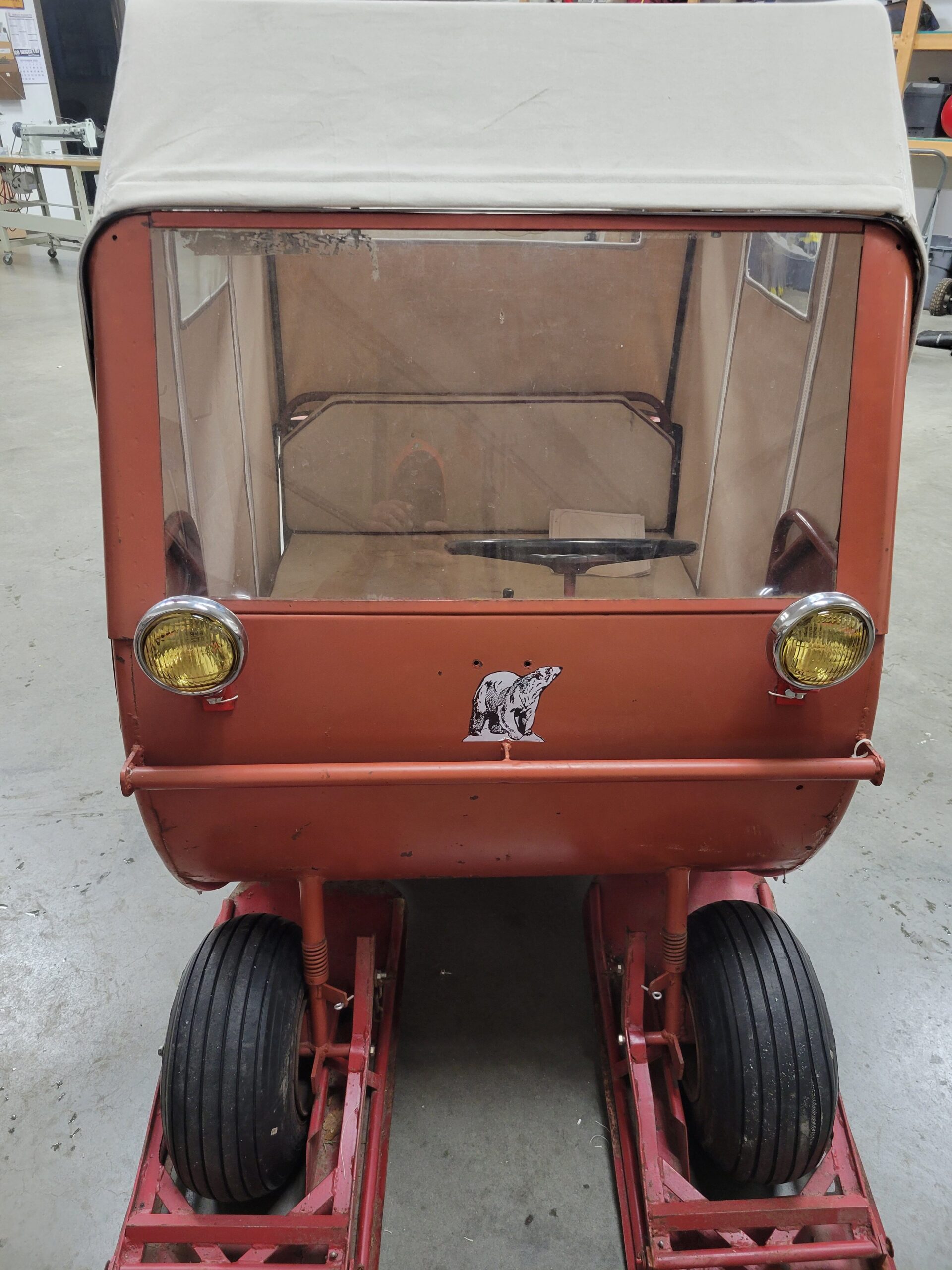 For this vintage snowmobile it was very basic as to what the customer was wanting us to do. Simply, when the customer came into the shop he was looking to replace the canvas that the snowmobile was born with. With this snowmobile being a 1962 Artic Cat 500, the original canvas was over 60 years old. He wanted to replace the canvas to the original look of the snowmobile. It was important to the customer that we duplicated the window size, window placement, zipper size and zipper placement; in the effort to keep everything as original looking as possible. He made it very clear that the snowmobile was mainly a show sled and vintage was key.