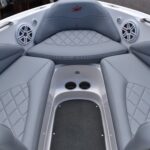 The project was recovering all exterior upholstery on the 2010 X15 Mastercraft that was damaged from a hailstorm. The customer had specific requests that we keep all of the diamond shaped design in 8 of the seat bottoms and captain’s chair seat bottom and that we use a “cooling” material so the cushions would not be so hot to sit on in the sun. We had been asked to completely change the color scheme to gray vinyl with dark red thread instead of black and white like the old cushions.