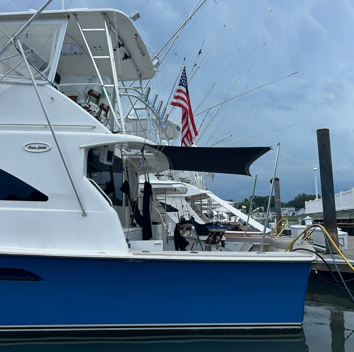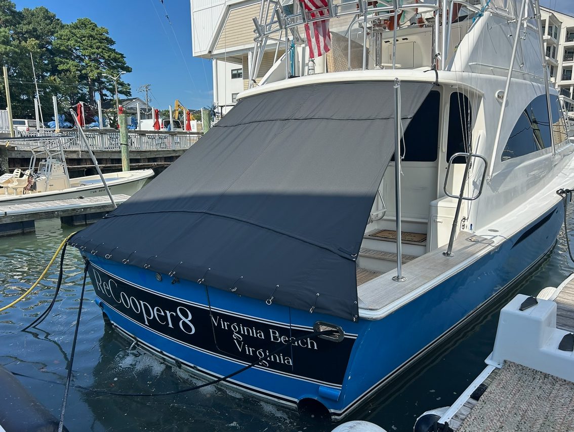 The client wanted to cover the cockpit when docked in the slip, and also wanted a sunfly when rigging and fishing in the heat.