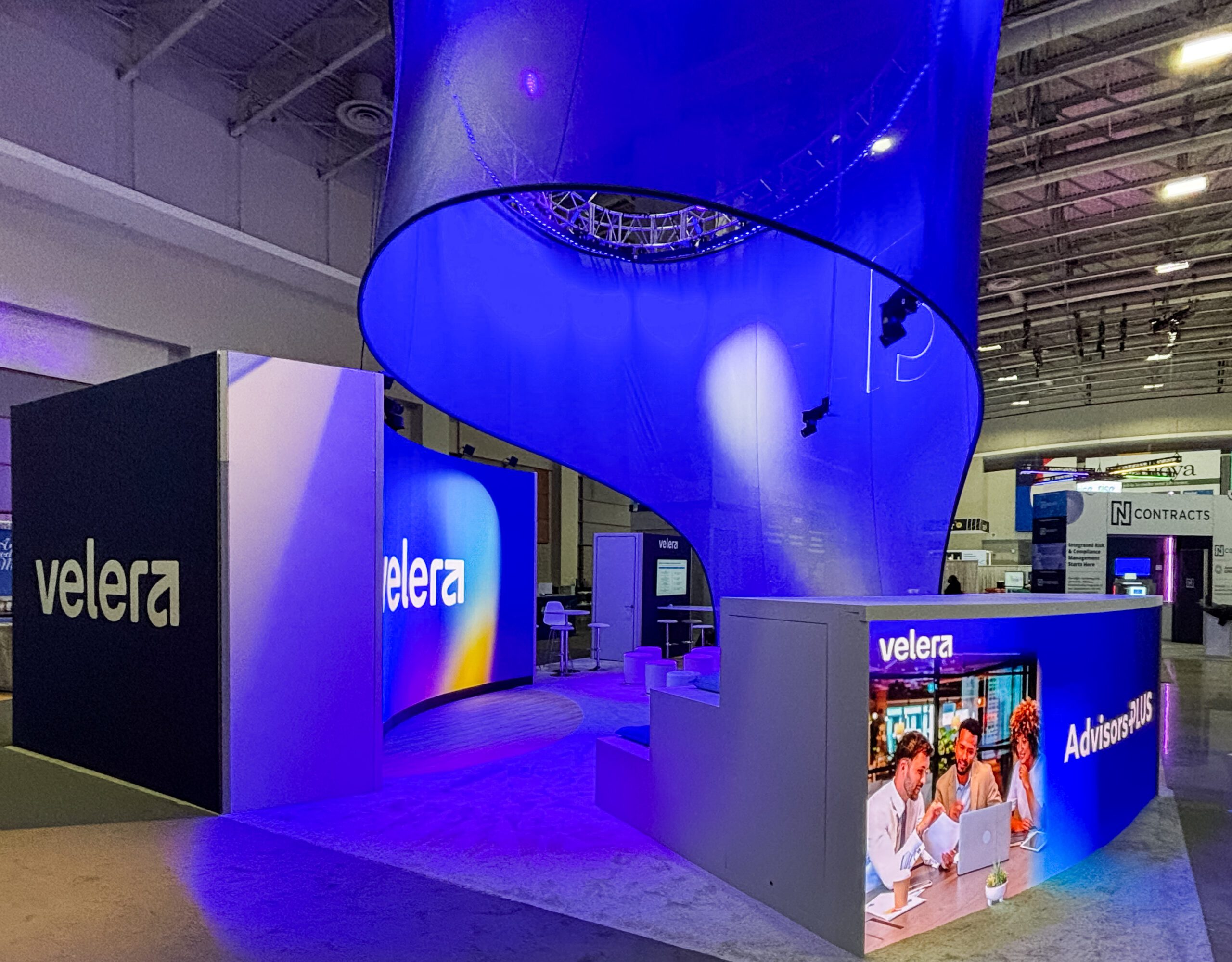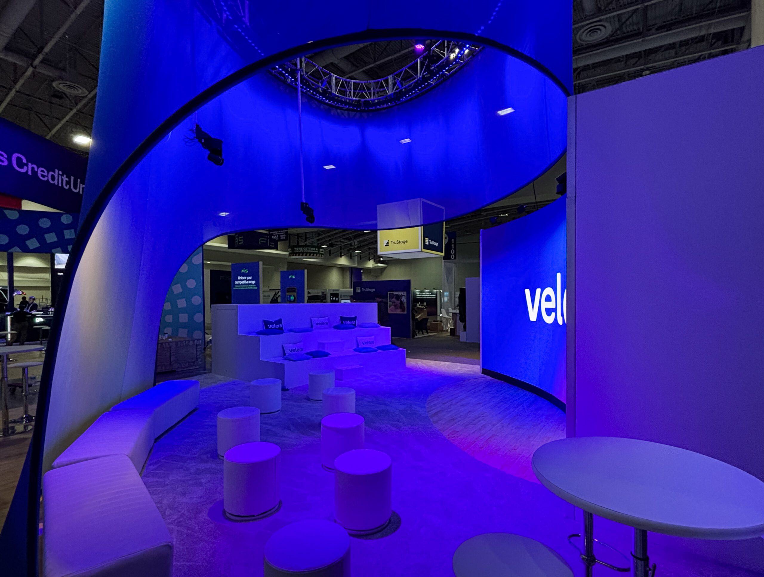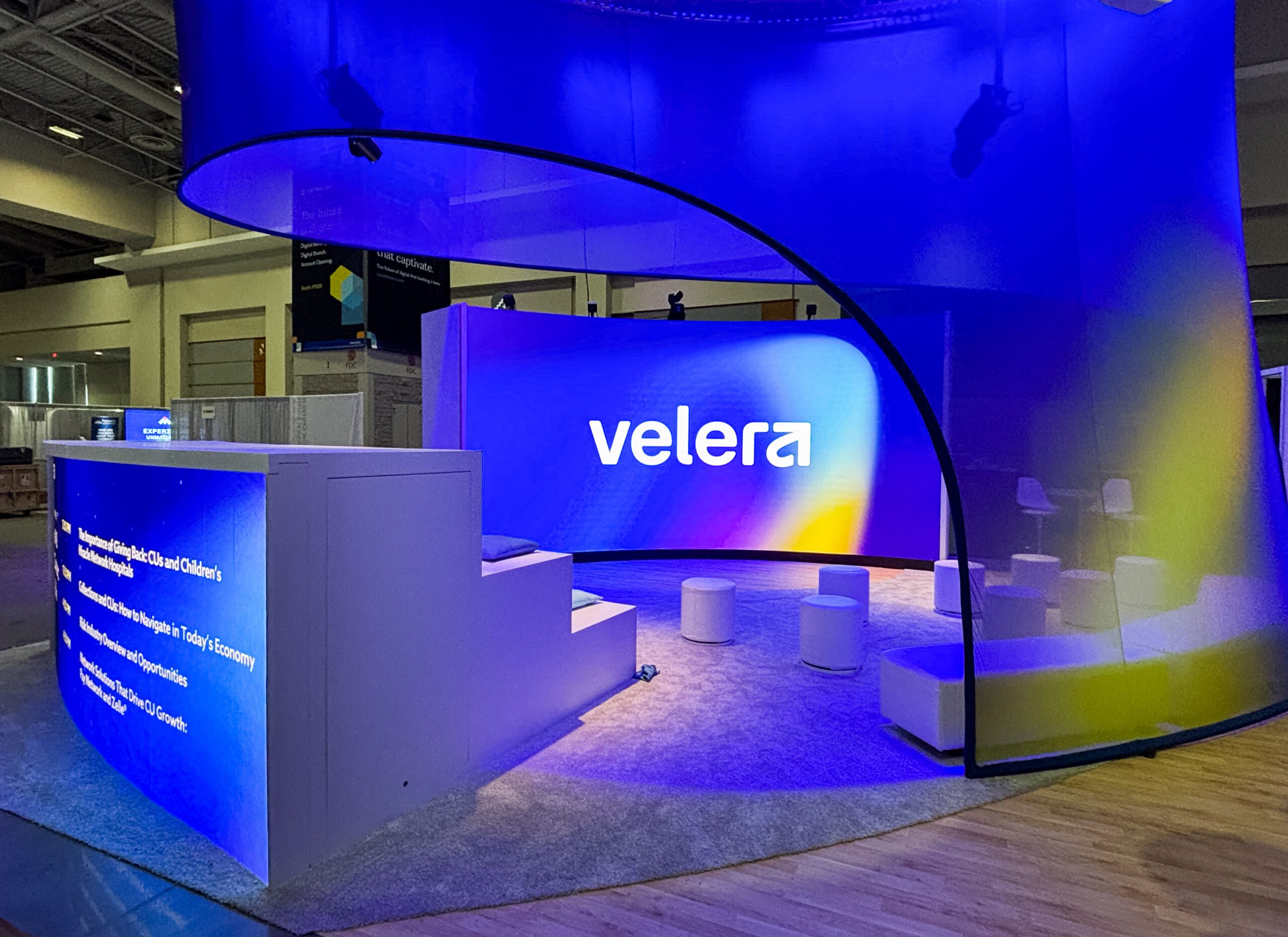 Velera wanted a larger and more engaging area at the 2025 CUNA GAC conference. MIG's senior creative director, Jeff Poe, designed this outstanding organic structure: